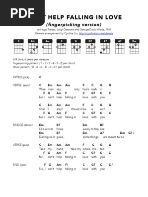 Can T Help Falling In Love Fingerpicking Ukulele Chord Chart Pdf Entertainment General